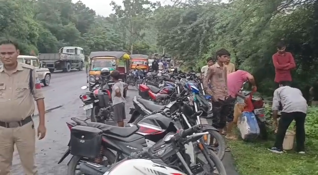 डीजल से भरी पलटी टैंकर, लोग बाल्टी गैलन में लेजाने लगे डीजल, पुलिस बनी मुखदर्शक