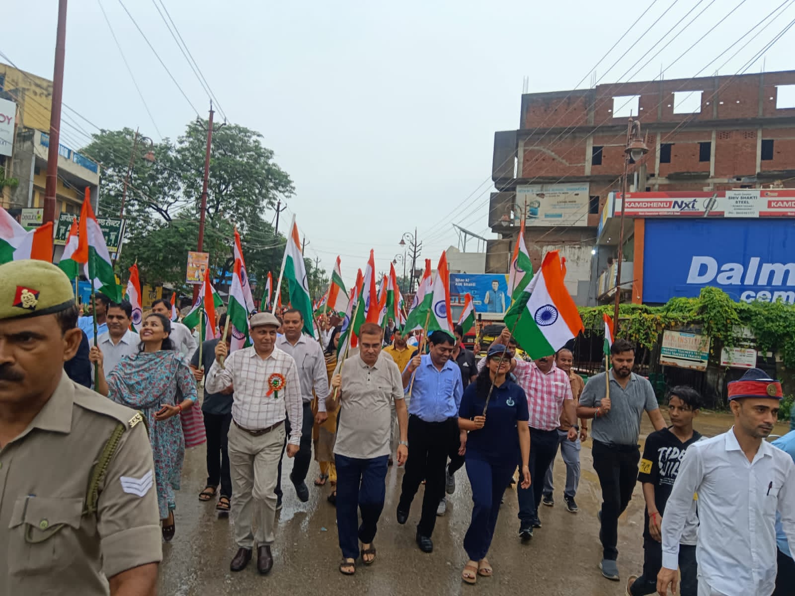 आजादी का अमृत महोत्सव हर घर तिरंगा अभियान के तहत जिला मुख्यालय बढ़ौली चैराहे से डीएम सोनभद्र के नेतृत्व में निकाली गई भव्य पैदल तिरंगा यात्रा